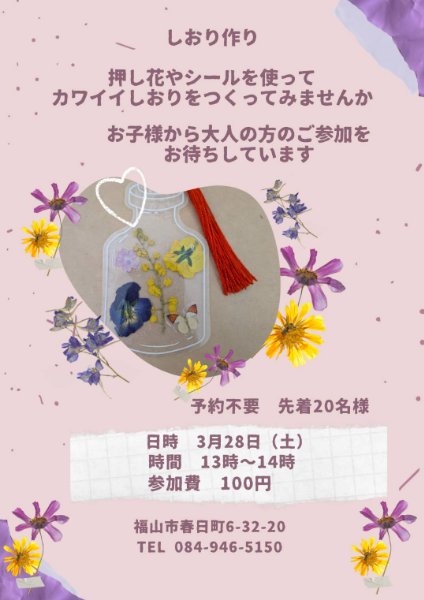 ♪3/28(土)しおり作りイベント開催のお知らせ♪